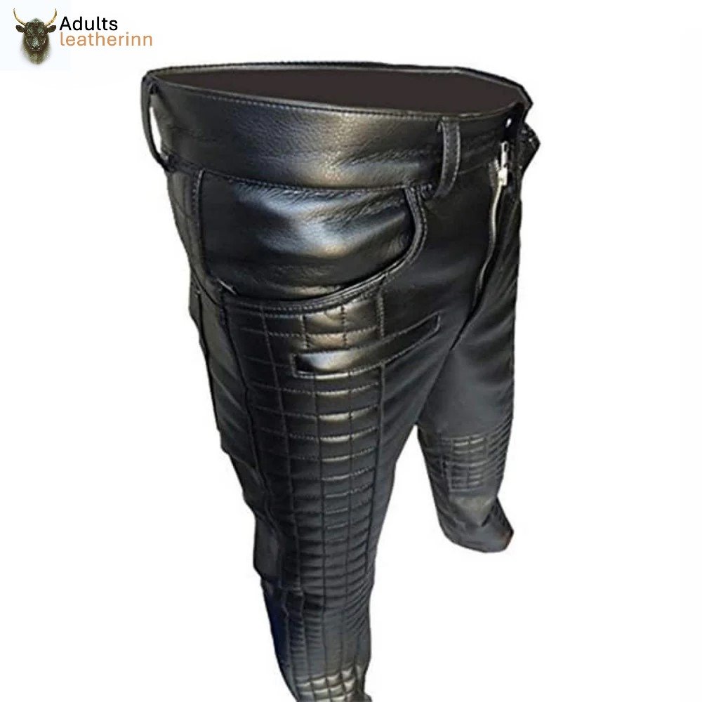 Mens Black Cow Leather Sleek and Sexy Quilted Style Jeans BLUF Pants Trousers
