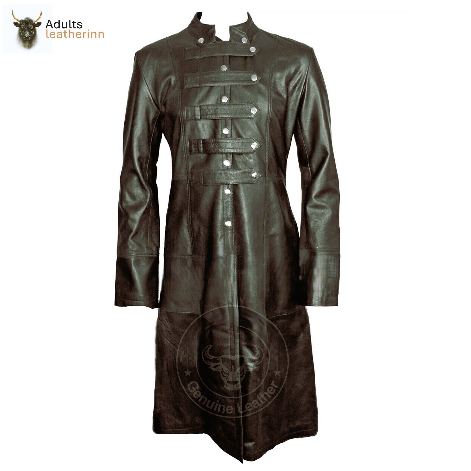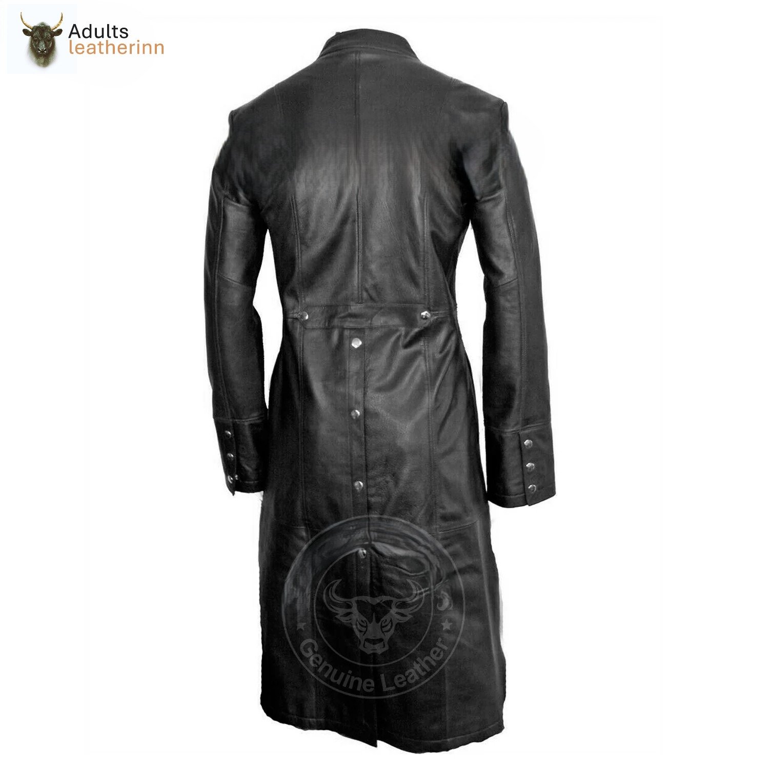 Mens Black Cowhide Leather Long Matrix Trench Coat Goth Steampunk Van Helsing Gothic Trench Coat New