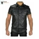 Mens Boys Hot Police Uniform Shirt Genuine Soft Lambskin Leather Shirt All Sizes Gay