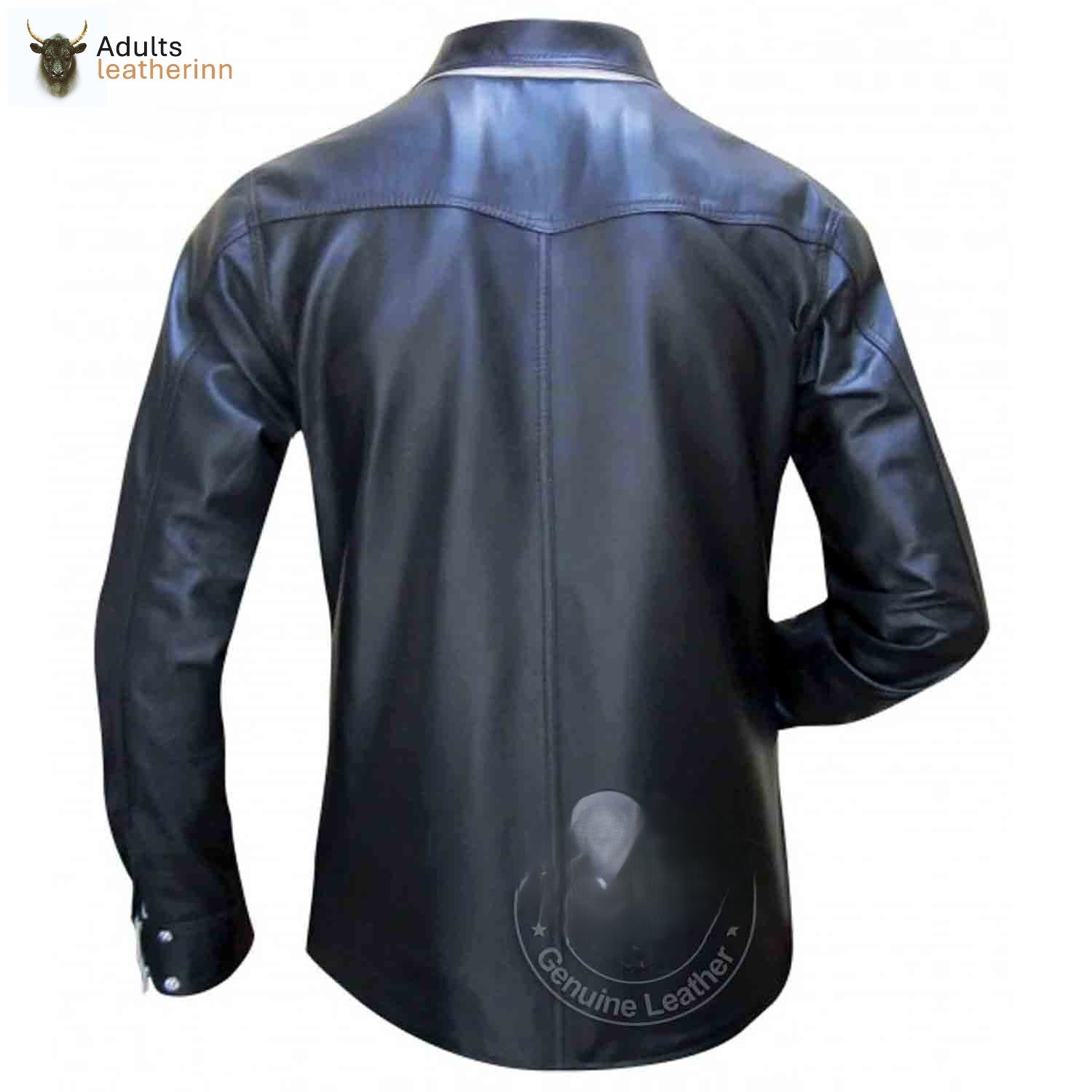 Men’s Real Sheep Nappa Leather Full Sleeve BLUF Bespoke Tailored Shirt in Black and White Two Tone
