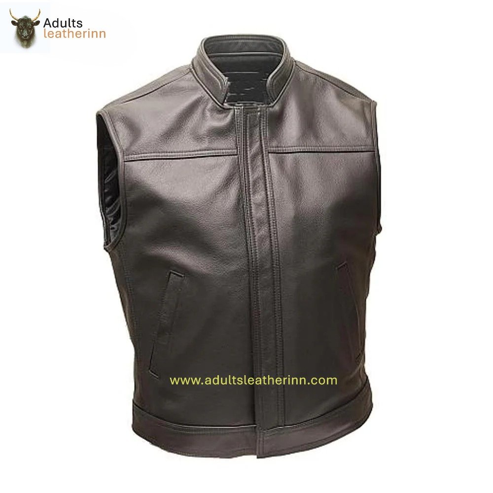 Mens Superb Quality 100% Cowhide Leather Biker Style Waistcoat Vest