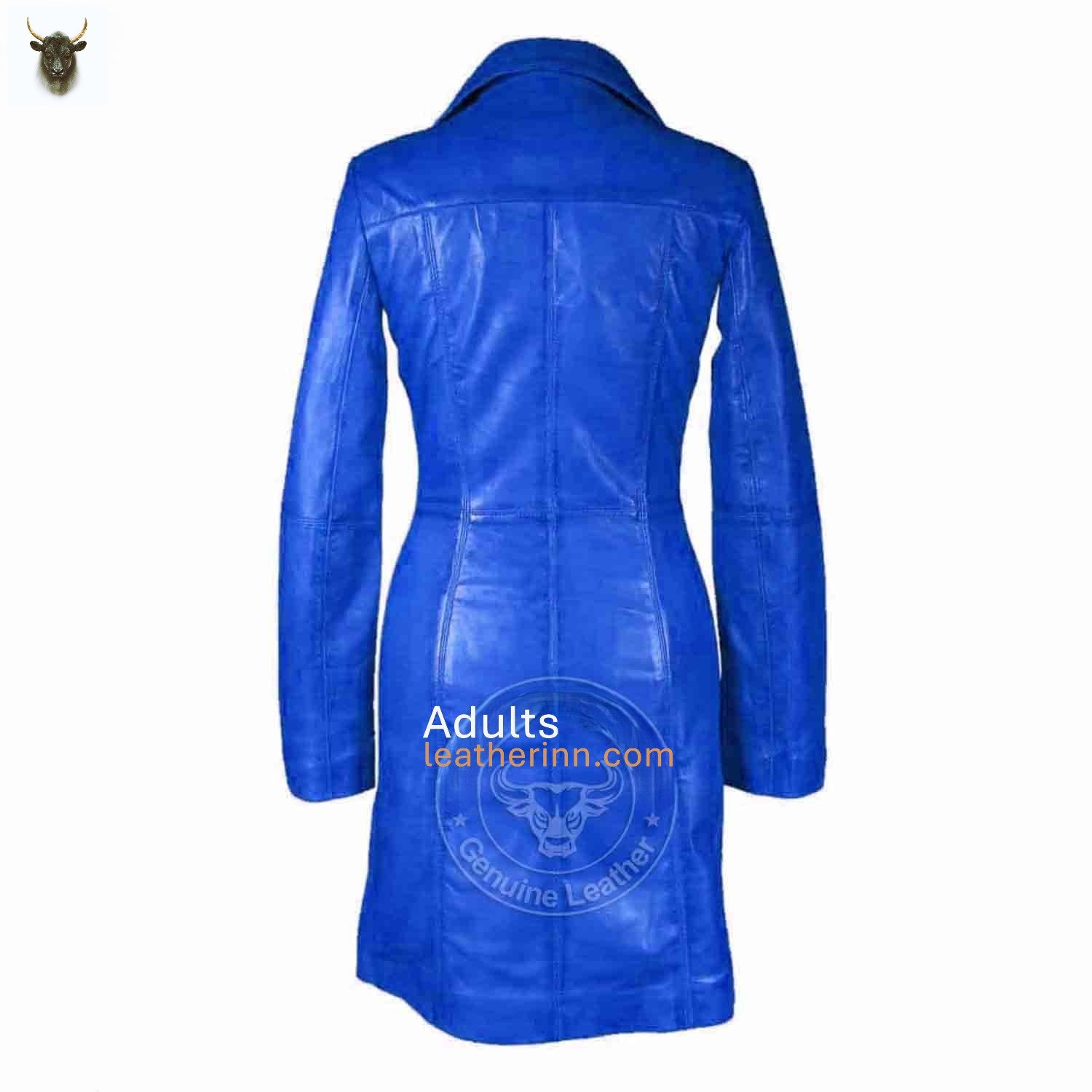 Womens Blue Beautiful LAMBS LEATHER Ladies Steampunk GOTH Style Trench Coat T16
